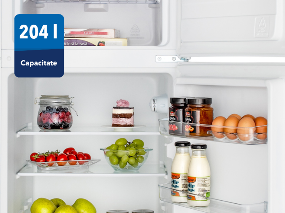 Frigiderul cu 2 usi Daewoo ofera o capacitate generoasa, fiind ideala pentru a stoca toate alimentele necesare. Aceasta are un design elegant, ce se potriveste in orice bucatarie. Are o capacitate totala de 204 litri si dispune de o compartimentare eficienta pentru a pastra alimentele in cele mai bune conditii.