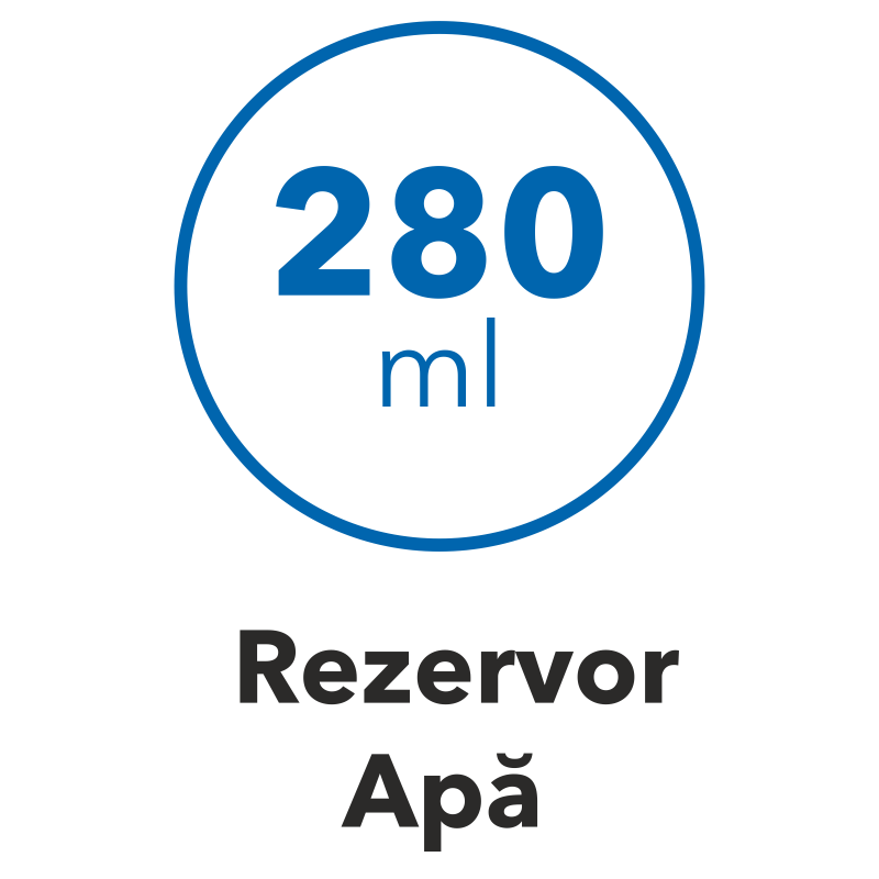Rezervor apa – pentru o umplere usoara, rezervorul de 280 ml este detasabil si suficient de incapator pentru o sesiune de calcat sau retusuri rapide inainte de a iesi din casa. |