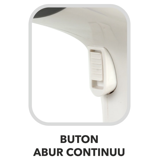 Buton abur continuu – nu este nevoie sa pompati manual pentru eliminarea aburului, ci prin apasarea butonului aparatul furnizeaza abur continuu pentru indepartarea rapida si usoara a cutelor. |