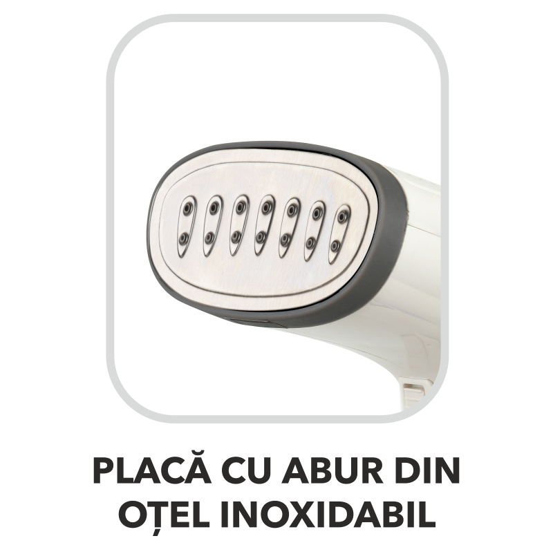 Placa cu abur din otel inoxidabil – un material durabil, ce mentine caldura pentru o perioada indelungata. |