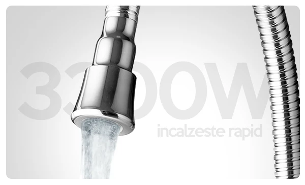 Cu o putere de 3300 W, acest robinet electric va ofera un flux rapid si constant de apa calda, asigurandu-va confortul maxim.