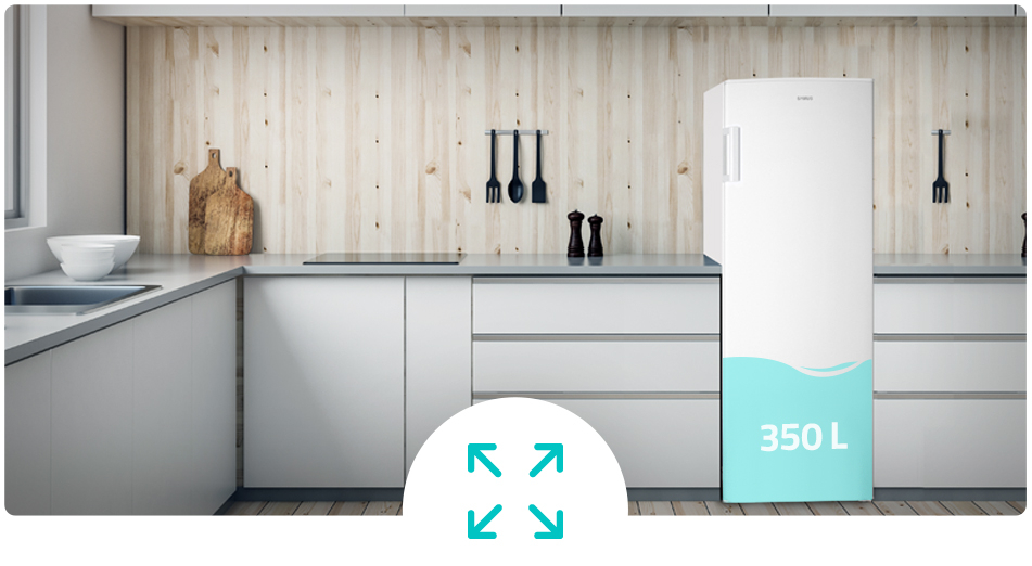 Capacitatea neta totala de 331 litri este inteligent impartita in interior, oferind suficiente spatii pentru orice tip de aliment. Frigiderul Samus SR456E este prevazut cu 6 rafturi din sticla detasabile, pe care le puteti monta in functie de necesitati, un sertar special conceput pentru a mentine cat mai mult prospetimea fructelor si legumelor, iar pe usa se gasesc 5 balcoane in care poti depozita cu usurinta oua, sticle sau borcane.