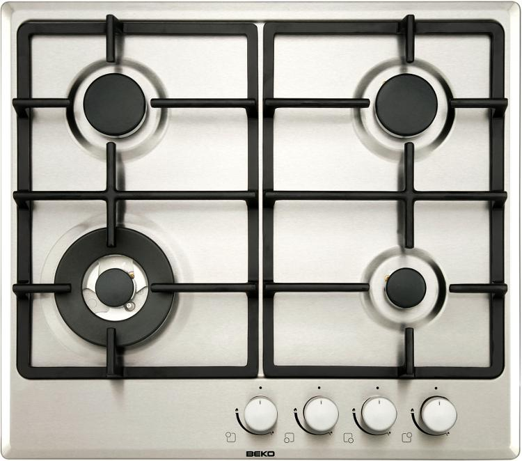 Plita cu gaz incorporabila Beko HIAW64225SX, 4 arzatoare, suprafata inox, panou butoane frontal, supapa de siguranta la stingerea flacarii, suporturi stabile din fonta pentru pentru vasele de gatit, autoaprindere integrata in buton, High-Efficiency™ Gas Burner, dimensiuni 4.6x58x51 cm, culoare inox
