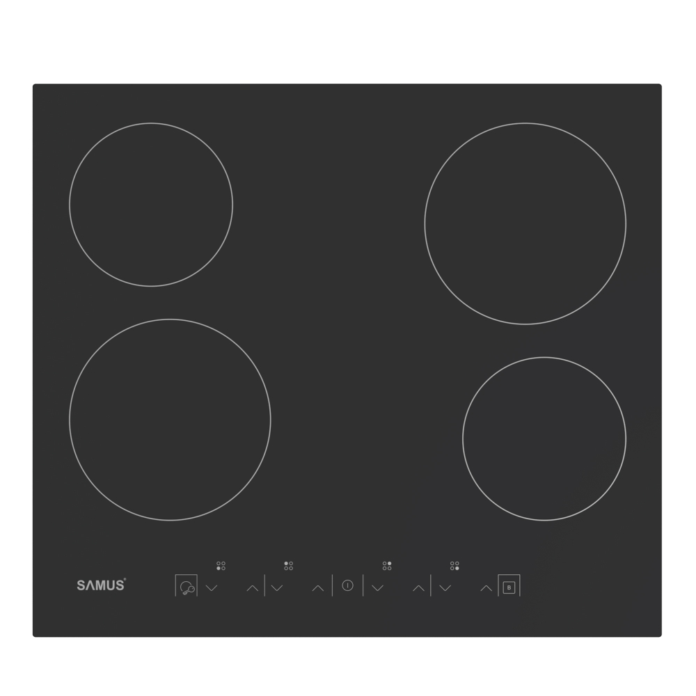 PLITA VITROCERAMICA SAMUS ADUCE ELEGANTA DIN BUCATARIA TA LA UN ALT NIVEL. DATORITA DESIGNULUI MODERN SI A STICLEI NEGRE MATA DIN CARE ESTE FABRICATA, ACEASTA SE ADAPTEAZA PERFECT IN ORICE BUCATARIE ELEGANA SI MODERNA. POTRIVITA IN SPECIAL CELOR CU UN STIL DE VIATA DINAMIC, PLITA SAMUS ESTE FIABILA, SE INCALZESTE RAPID SI POATE FI CURATATA EXTREM DE USOR.