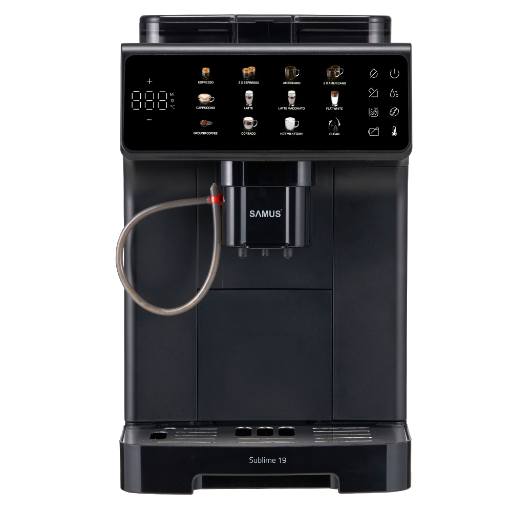 EXPERIENTA SUPREMA A CAFELEI ESTE ACUM SI MAI #APROAPEDETINE. TRANSFORMA FIECARE DIMINEATA INTR-O EXPERIENTA DE LUX CU SAMUS SUBLIME 19, ESPRESSORUL AUTOMAT CARE IMBINA TEHNOLOGIA AVANSATA CU ELEGANTA UNUI BARISTA PROFESIONIST. CU O SIMPLA ATINGERE, POTI SAVURA O CAFEA PROASPATA, EXACT ASA CUM ITI PLACE!