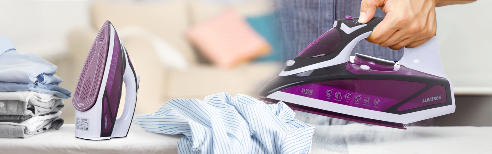 Având o combinație de culori elegantă fuchsia-alb și un design compact și modern fierul de călcat Albatros nu trebuie să lipsească din casa ta.