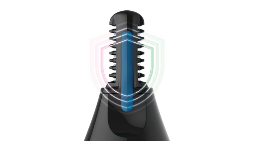 Tunde complet confortabil parul din nas, urechi si sprancene Foloseste acest aparat pentru a ajunge usor la parul nedorit din nas si din urechi si a-l indeparta eficient. Asigura-te ca ai narile curate inainte de utilizare si introdu cu atentie aparatul de tuns in nas, cel mult 0,5 cm si deplaseaza-l circular lent. Atunci cand tunzi parul din urechi, asigura-te ca nu ai ceara in urechi. Pentru sprancene, gliseaza unul dintre cei doi piepteni (de 3 si 5 mm) in canale si tunde cu presiune usoara, deplasand in sens contrar directiei in care cresc firele de par, pentru o tundere uniforma a sprancenelor la lungimea dorita.