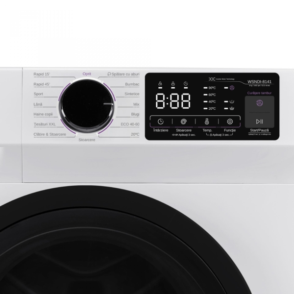 Avand o capacitate de 8 kilograme, aceasta va face fata cu brio cerintelor tale si ale familiei tale numeroase. Speli suficient de multe haine la o singura utilizare.