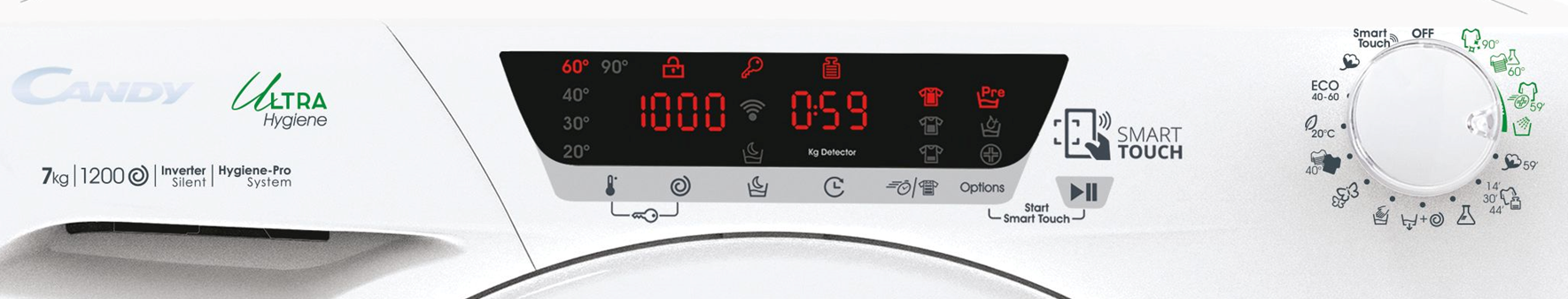 Candy ULTRA HYGIENE ofera un set complet de cicluri si caracteristici diferite de spalare dedicate igienizarii rufelor chiar si in timpul record de numai 59’.