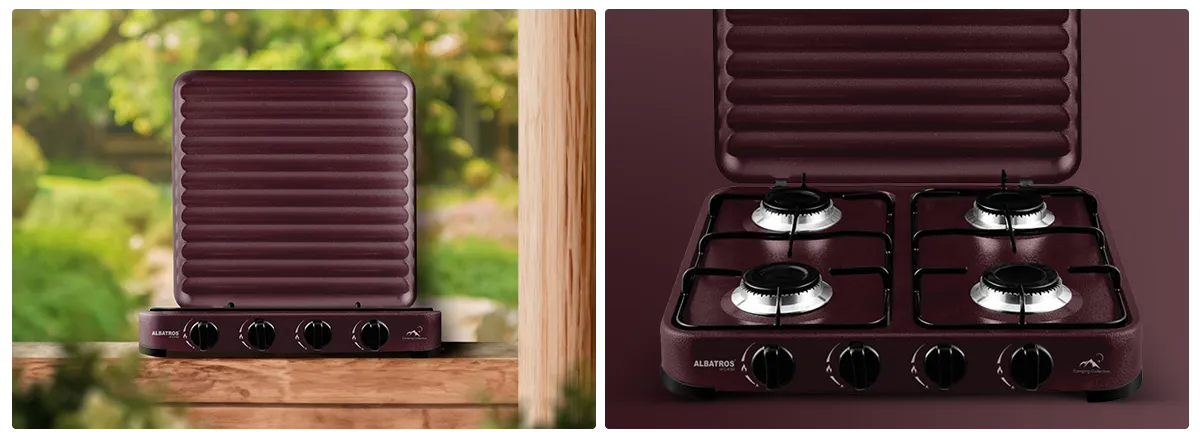 Plita pe gaz Albatros APG41BR este ideala pentru utilizarea in spatii exterioare. Functioneaza cu butelie tip GPL, aceasta plita ofera versatilitate, eficienta si siguranta in prepararea mancarurilor in aer liber.