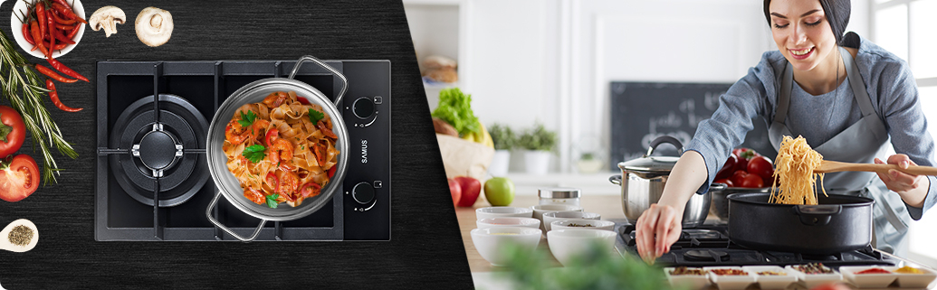 Plita încorporabilă Samus își face imediat loc în bucătăria ta. Fabricată din inox și având grătar de fontă, cu un design modern și elegant, aceasta te ajută să transformi gătitul într-o adevărată plăcere. Gătește cu ușurință și bucură-te de performanță și fiabilitate.