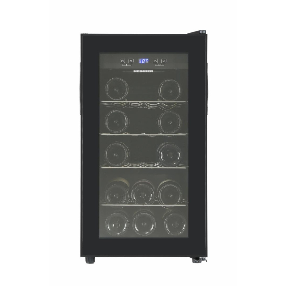 RACITOR DE VINURI HEINNER HRV-A52DRM18, 55 L, CLASA G, 18 STICLE 750 ML, DISPLAY LED, 4 RAFTURI LEMN, H 67 CM, NEGRU 53 - Alege produsul care se potrivește nevoilor tale